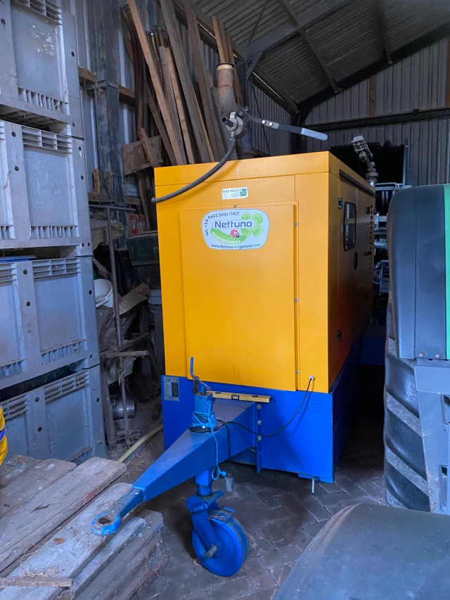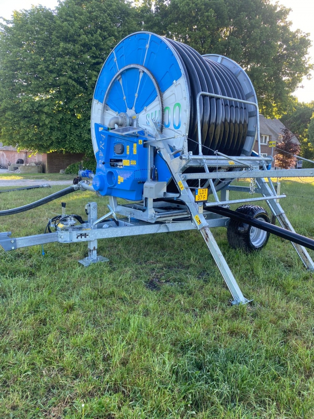 Super nette Ocmis haspel 110x350m, met computer, alles hydraulisch, brede banden, kenteken, dikke slang, machine als nieuw, tevens zeer nette Nettuno pompset met vulvat, 83pk met 80/4-3a pomp, elcos 137 met app functie, 3500 uur, inclusief 35 buizen humett met buizenwagen