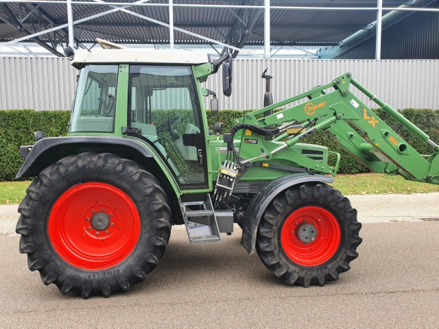 nette goede fendt 308 holland farmer, beschikt over 2dw ventielen, remventiel, geveerde vooras met keurige hauer voorlader met 3e functie en parallel geleiding. Trekker is nagezien kan zo aan het werk.